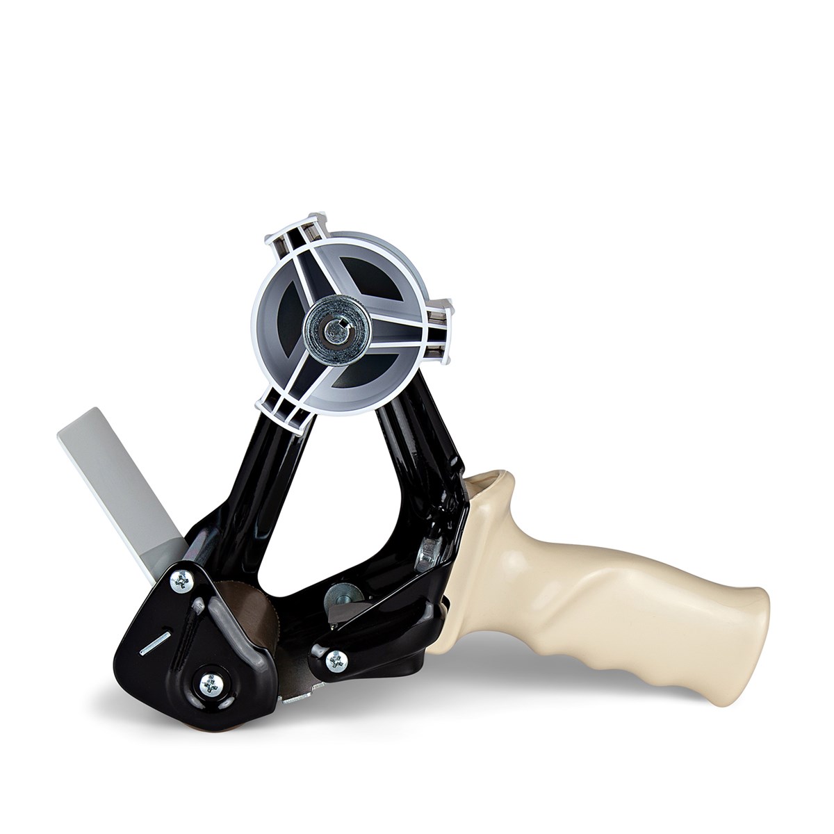 Ergonomisk tejphållare för packtejp. Denna användarvänliga tejphållare är tillverkad av en kraftfull stålkonstruktion med ett ergonomiskt handtag i slagtålig plast samt härdat knivblad som enkelt skär av tejpen till önskad längd. Med justerbar broms som passar lättavrullad tejp. Lämplig för användning i lager och andra situationer där många kartonger ska förseglas. Passar packtejp 75 mm x 66 m.