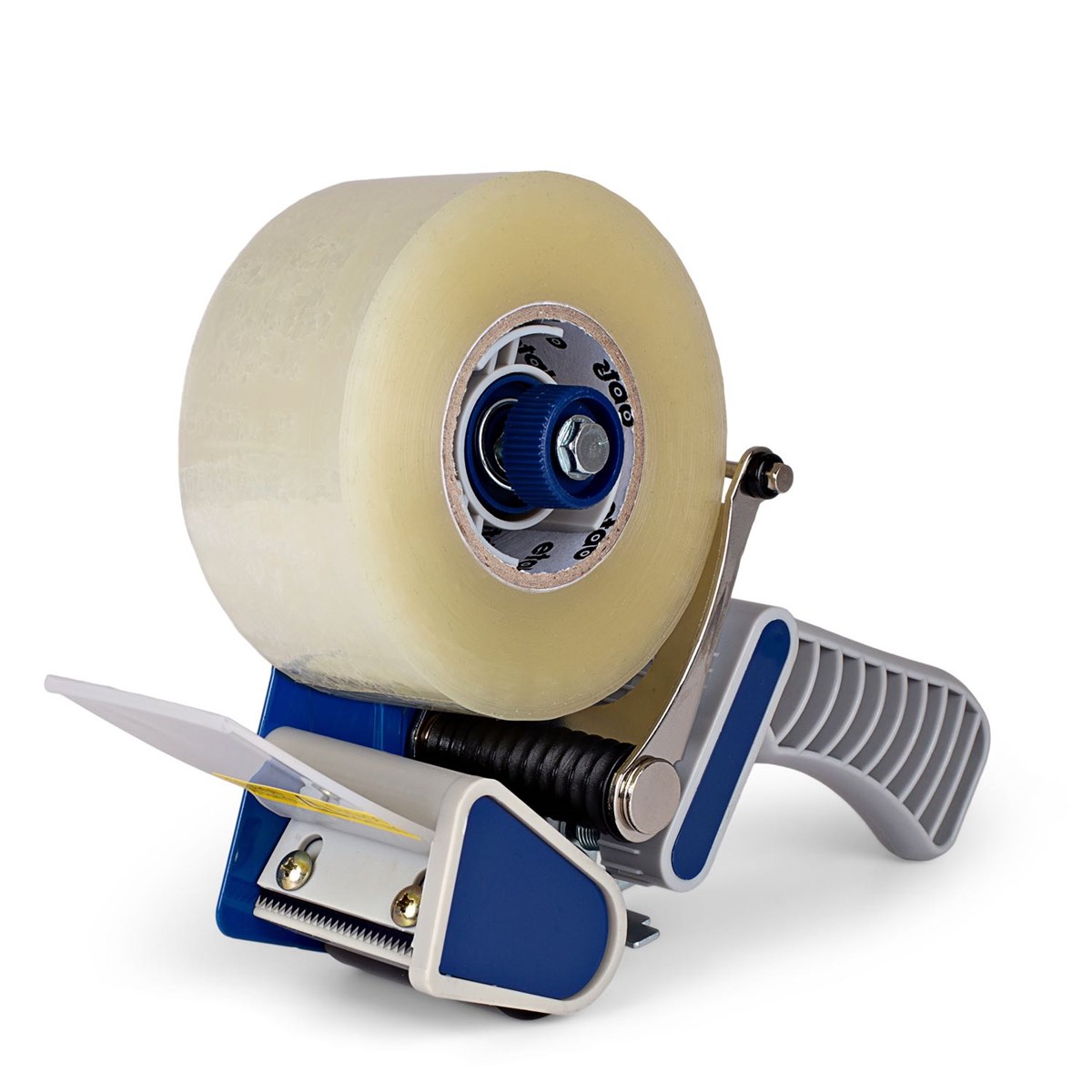 Handhållare med handtag för packtejp i upp till 50 mm bredd. Med en 2″ plasthylsa som passar bland annat Etab 5438 ”Smart tape”.