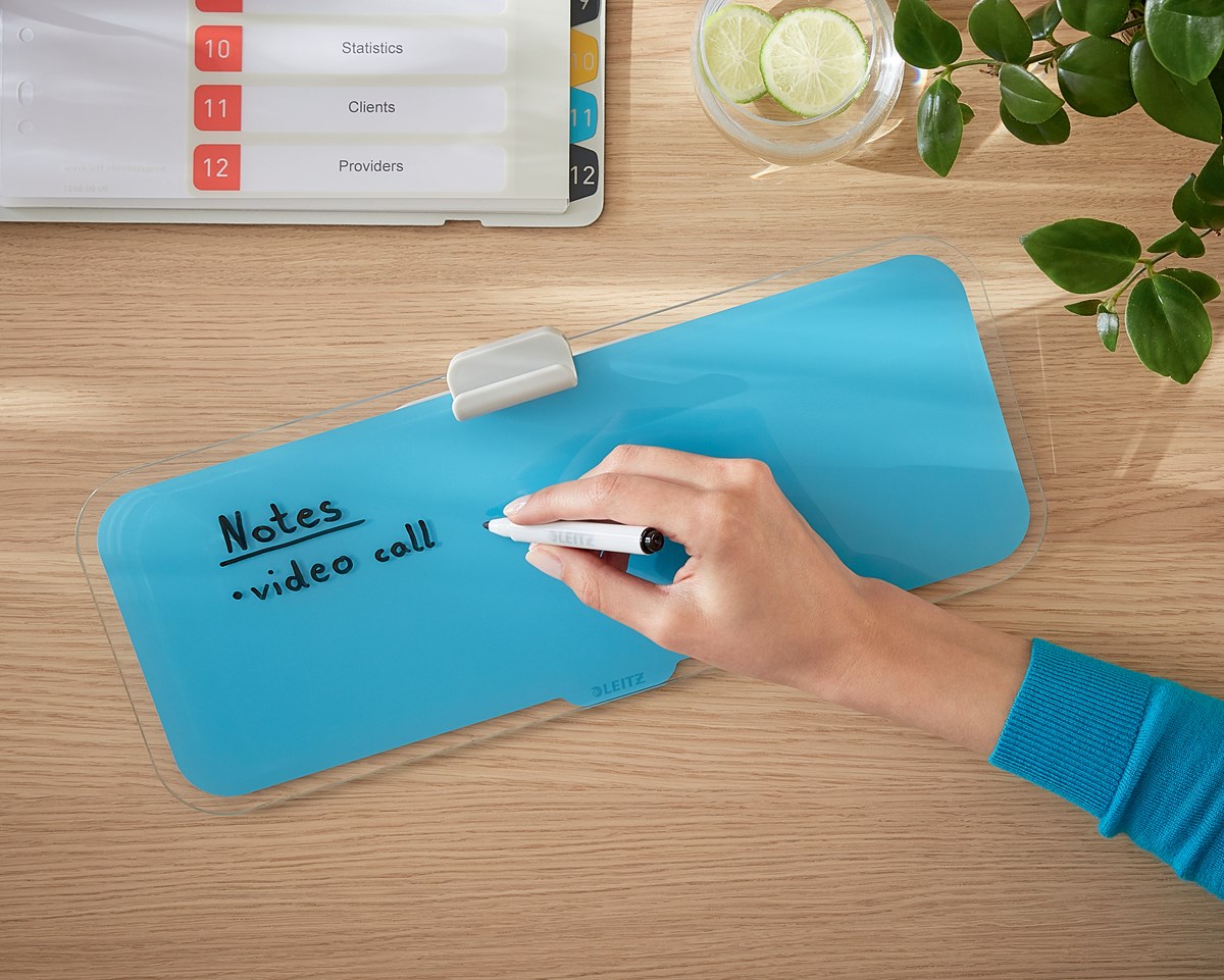 Glastavla för skrivbordet som är idealiskt för anteckningar eller för att skriva ned meddelanden och påminnelser. Yta av härdat säkerhetsglas med mycket hög raderbarhet och hög motståndskraft mot bläckfläckar, pennmärken och repor. Inkl. penna. Mått: 15 x 38 cm.