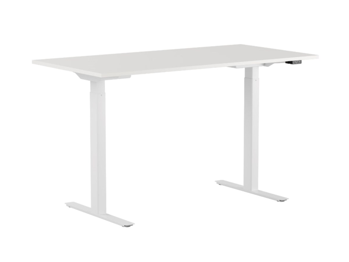 Madrid höj-/sänkbart stativ med T-benstativ och justerbara fötter. Fotlängd 600 mm och flexibel sarg mot bordsskivan. Slaghöjd 500 mm. Passar skivor från 1000x600 till 1600x800 mm. Skiva ingår ej.