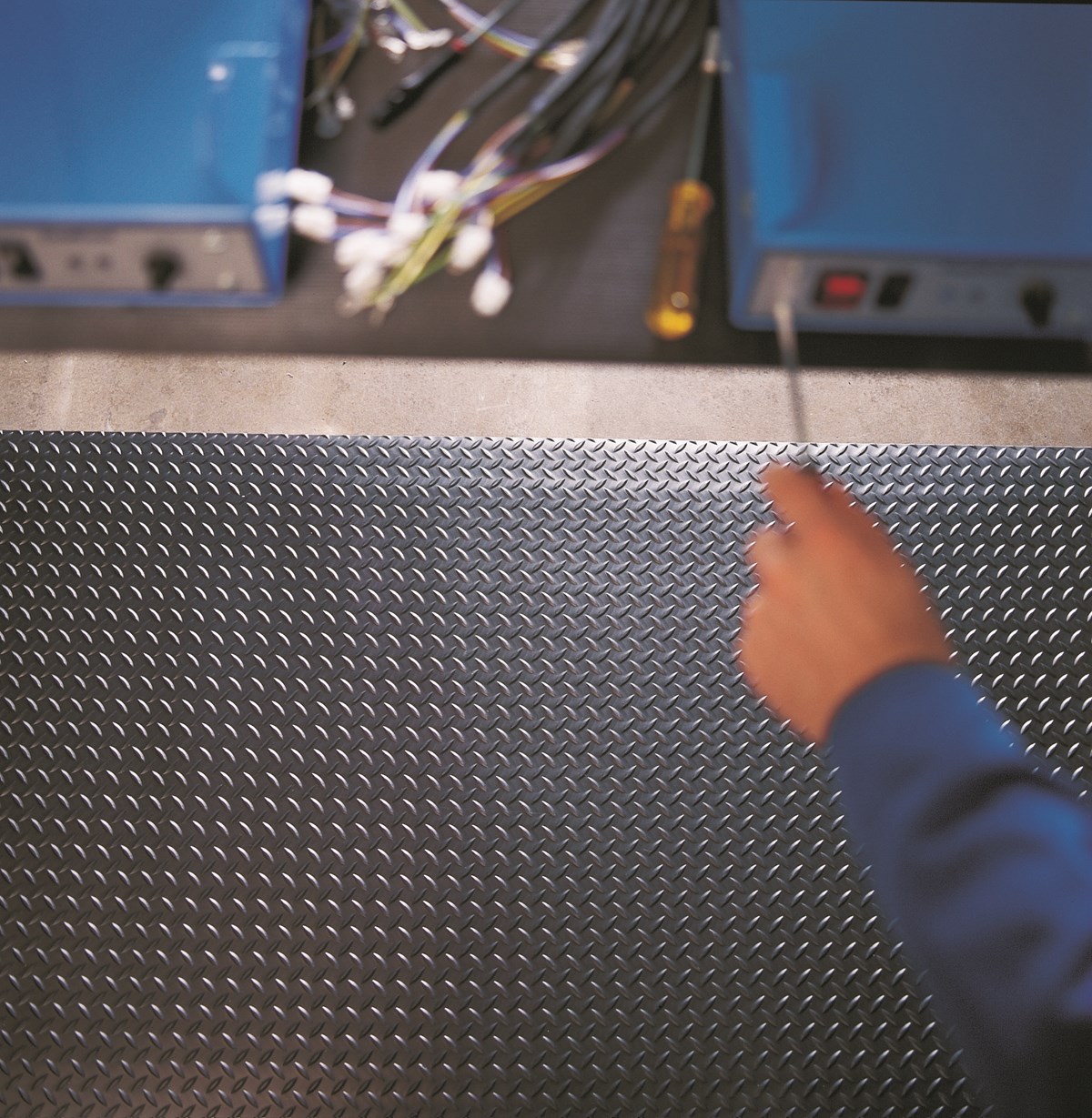 Mycket slitstark matta med durkmönstrat ytskikt för bästa halksäkerhet även vid vätskespill. Ytskikt i vinyl och undersida av Zedlan, skummad vinyl. Fasade kanter underlättar att köra vagnar över mattan. Mått: 91 x 152 cm. 16 mm tjock. Kan även beställas i löpmeter och i andra bredder.