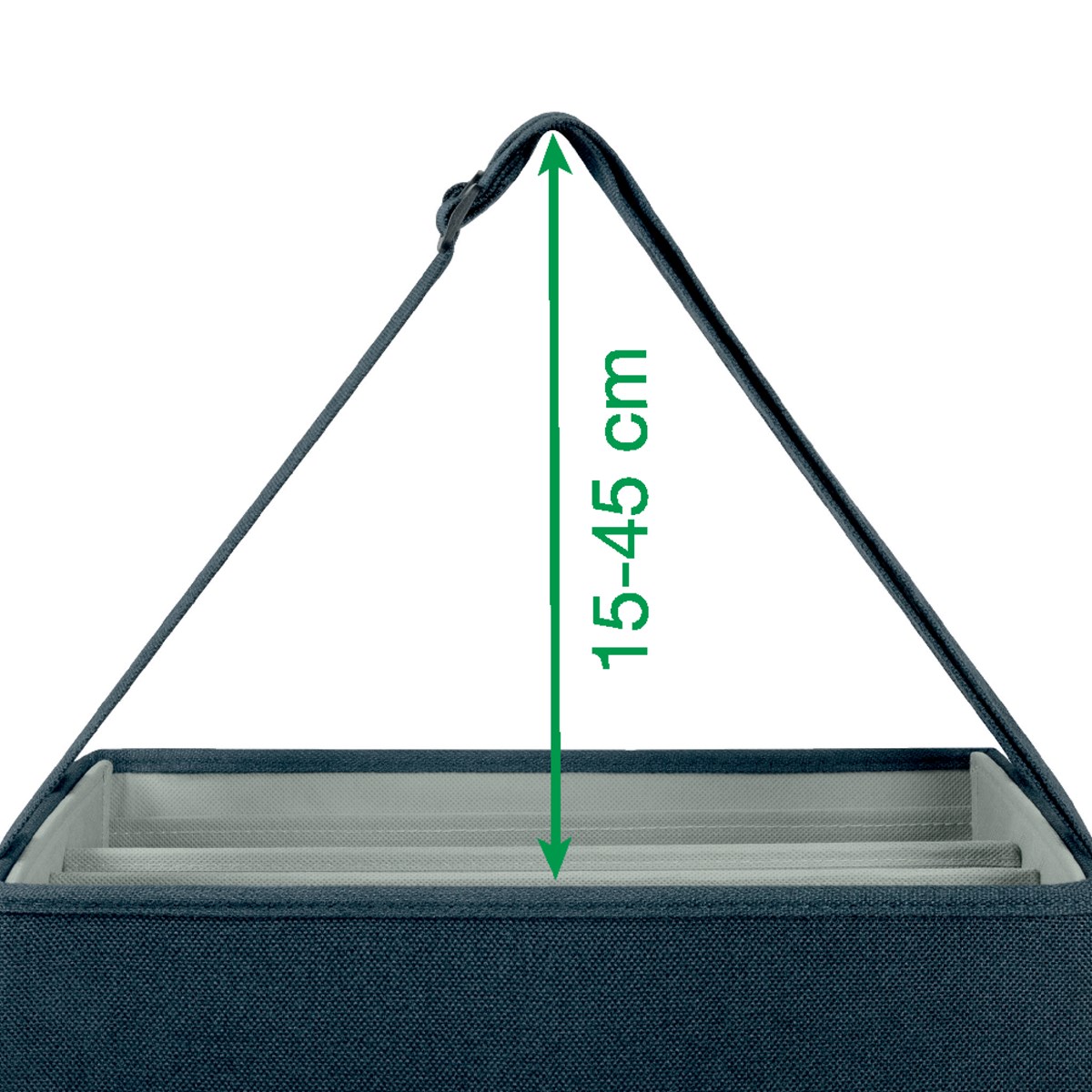 Väskan har bärhandtag med justerbar längd (150-450 mm) för att du enkelt ska få med dig dina saker till skrivbordet och sedan enkelt kunna stuva undan dem när du är färdig för dagen. Perfekt för delade arbetsplatser och som lärarväska. Mörkgrå. Mått: 465 x 210 x 200 mm.