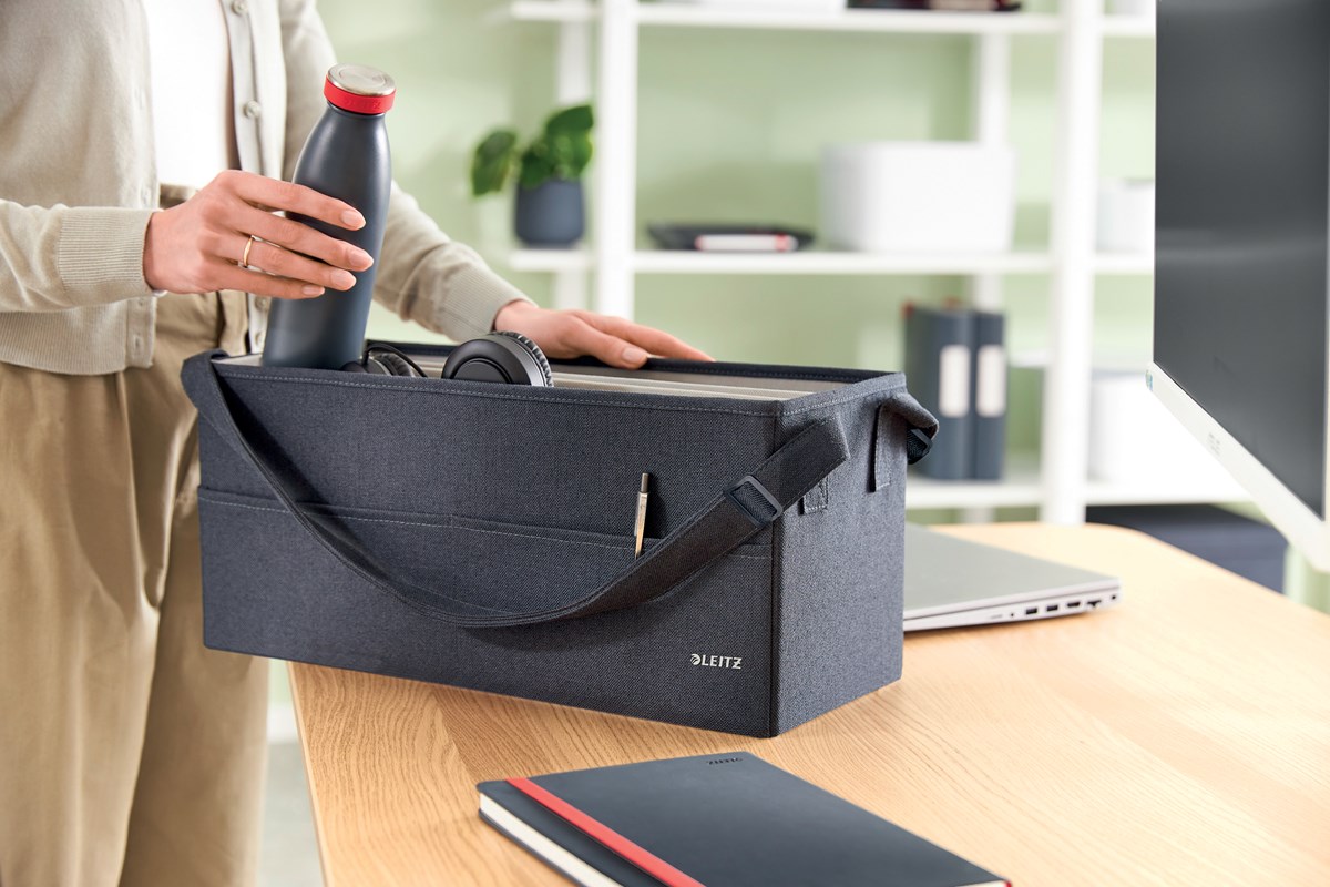 Gör dig hemmastadd vart än din dag tar dig med Fabric Storage-serien från Leitz. Med sin minimalistiska design och inbjudande mattgrå sammetsfinish kan du på ett elegant sätt hålla ordning på kontoret, hemma, vid hybridjobb och överallt däremellan.