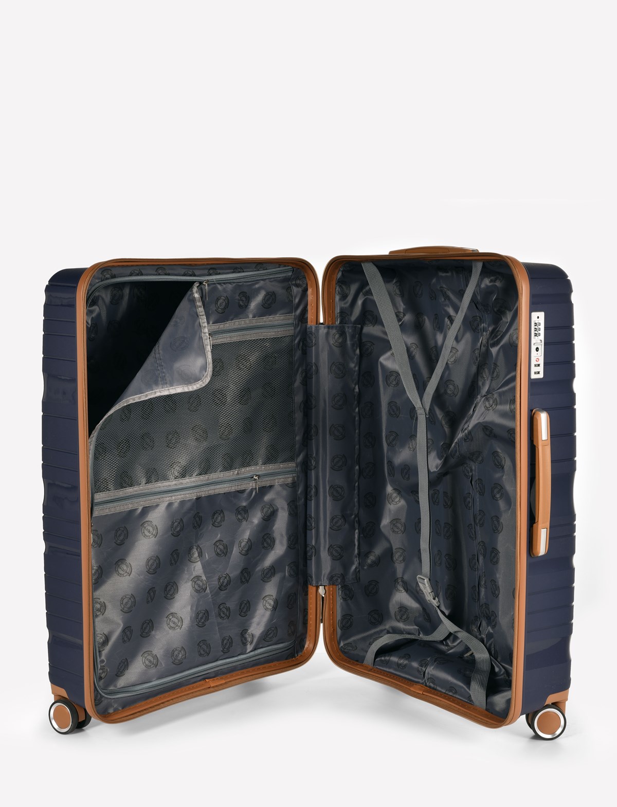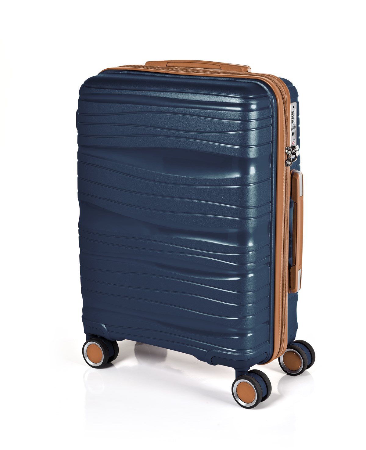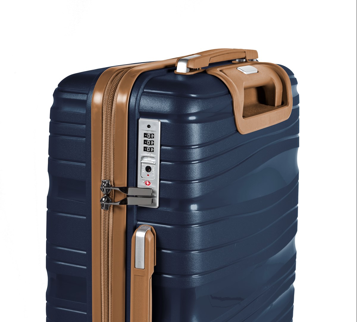 Set med tre resväskor i storlekarna 20, 24 och 28 tum. De är lätta och slitstarka, inget onödigt extramaterial - och storlekarna anpassade till olika typer av resor. Extra snygg design med bruna detaljer som gör den lättare att urskilja på  bagagebandet. Alla väskor har fyra dubbla hjul som rullar lätt och tyst och med det enkla teleskophandtaget i aluminium, blir de ännu smidigare att resa med. Väskorna är tillverkade av PP plast som är en tålig plast och den matta ytan gör den mer reptålig. Antistöld dubbel-dragkedja. Inbyggt TSA-lås. Garanti 2 år.