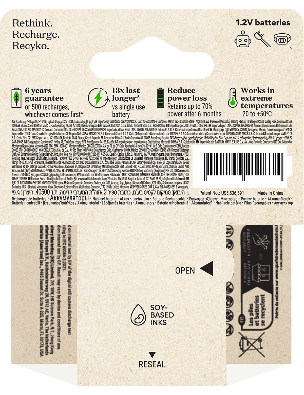Recyko 950 är ett kraftfullt laddningsbart svanenmärkt batteri som är utvecklat för ditt vardagliga användande. De är laddade vid köp och redo att användas direkt ur förpackningen. Till skillnad från engångsbatterier så kan Recyko användas vid låga temperaturer, ända ned till - 20°C. Batteriet är dessutom skapat med mer än 10% återvunna material och hela 94% av batteriet, inklusive förpackning är återvinningsbart.