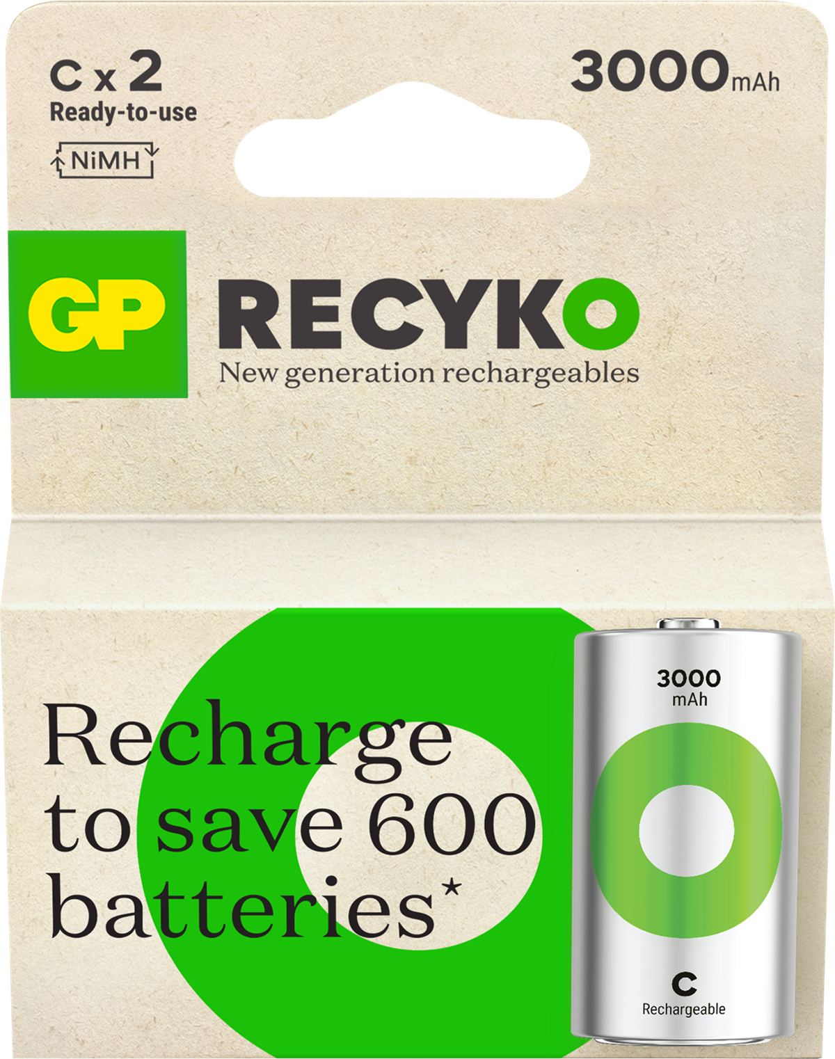 Recyko 3000 mAh batteri är ett laddningsbart NiMH batteri som är utvecklat för ditt vardagliga användande. De är laddade vid köp och redo att användas direkt ur förpackningen. Till skillnad från engångsbatterier så kan Recyko användas vid låga temperaturer, ända ned till - 20°C. Över 90% av batteriet, inklusive förpackning är återvinningsbart.