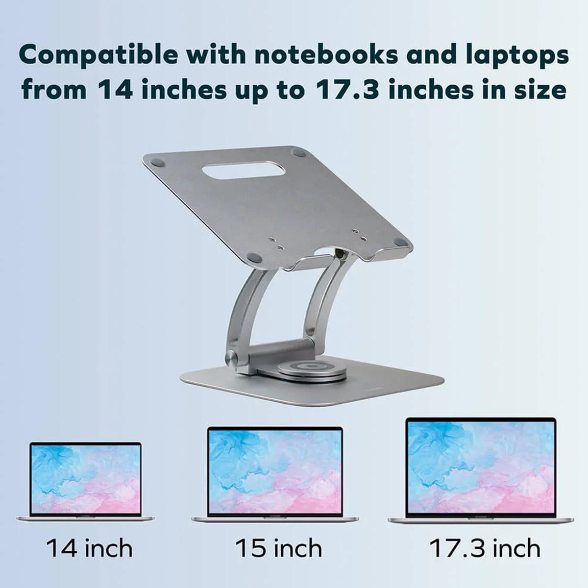 360 rotation 0-30 cm höjdjustering Stöder de flesta bärbara datorer från 10" - 17,3" Överlägsen viktbärande belastning på upp till 6 kg Taktila halkfria gummikuddar håller datorn på plats