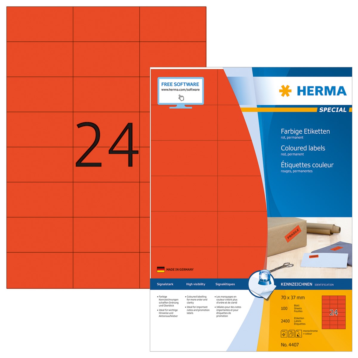 Etiketter Herma Special 70x37 mm röd 2400/fp