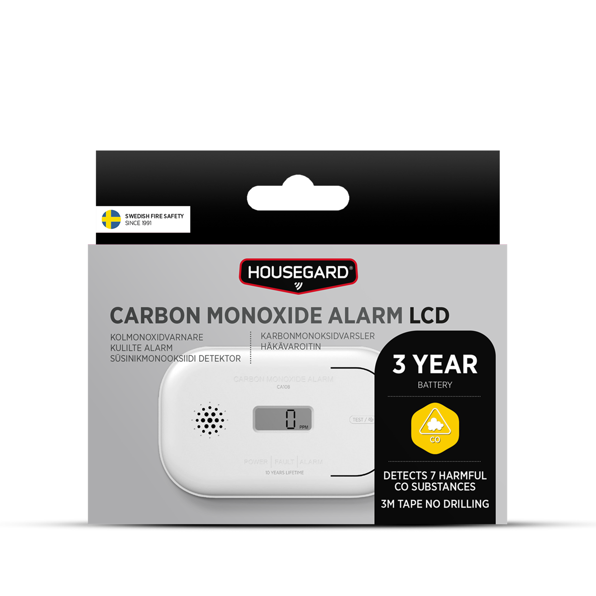 Housegard Kolmonoxidvarnare varnar omedelbart vid skadliga nivåer av kolmonoxid. Testad och godkänd: enligt 50291-1:2018 och EN50291-2:2019. Vilket innebär att den är godkänd för bostad, husbil, husvagn och båt. Med 3M monteringstejp går installationen extra snabbt och smidigt och du slipper ta fram borrmaskinen.