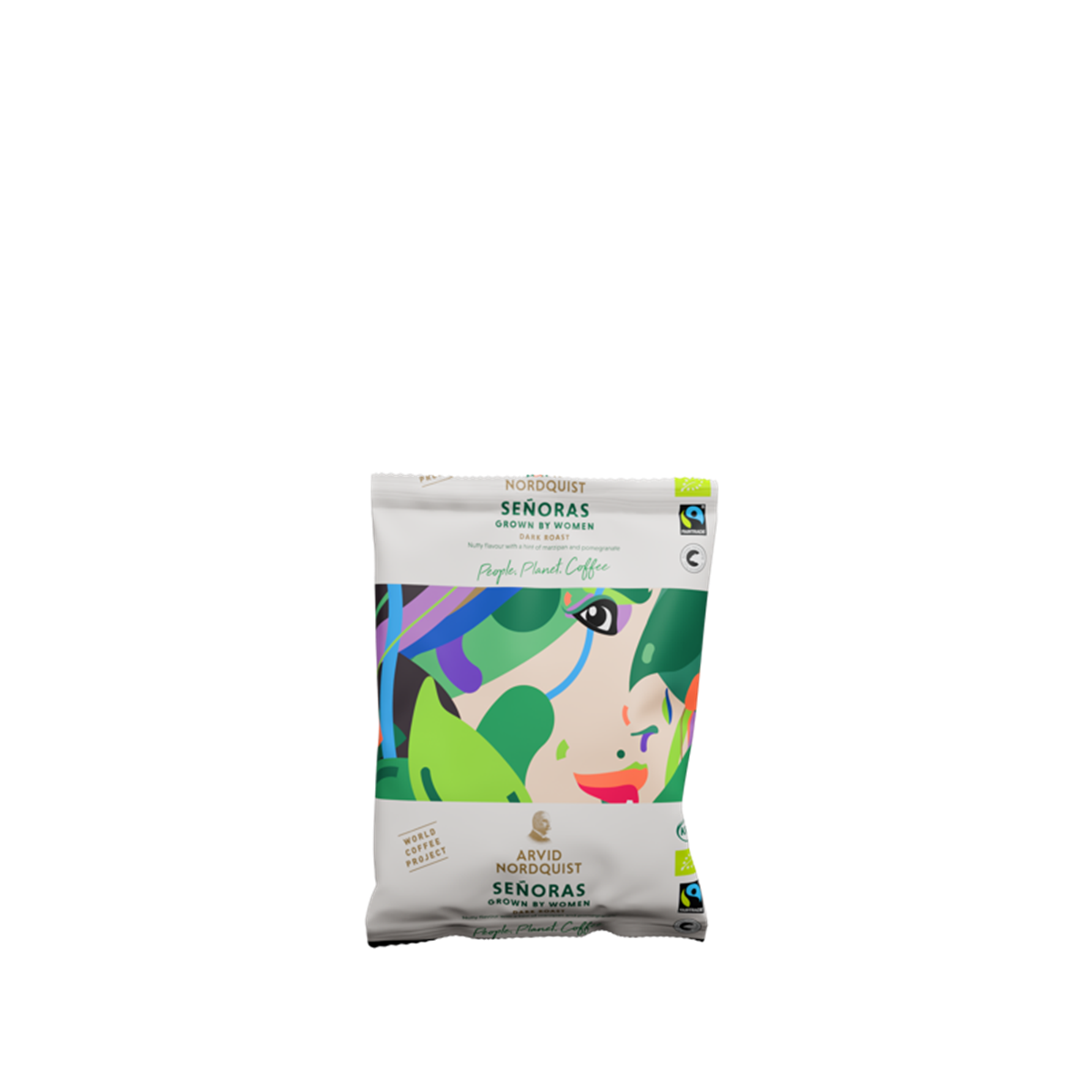 Ett mörkrostat kaffe, kraftfull och balanserad, med citruskaraktär och ton av marsipan. Tillverkas av bönor från kaffeodlingar som drivs av kvinnor. Genom att långsiktigt stödja dessa odlingar bidrar Arvid Nordquist till bättre levnadsförhållanden. 100% certifierade Arabicabönor från Sydamerika, Centralamerika och Östafrika.
