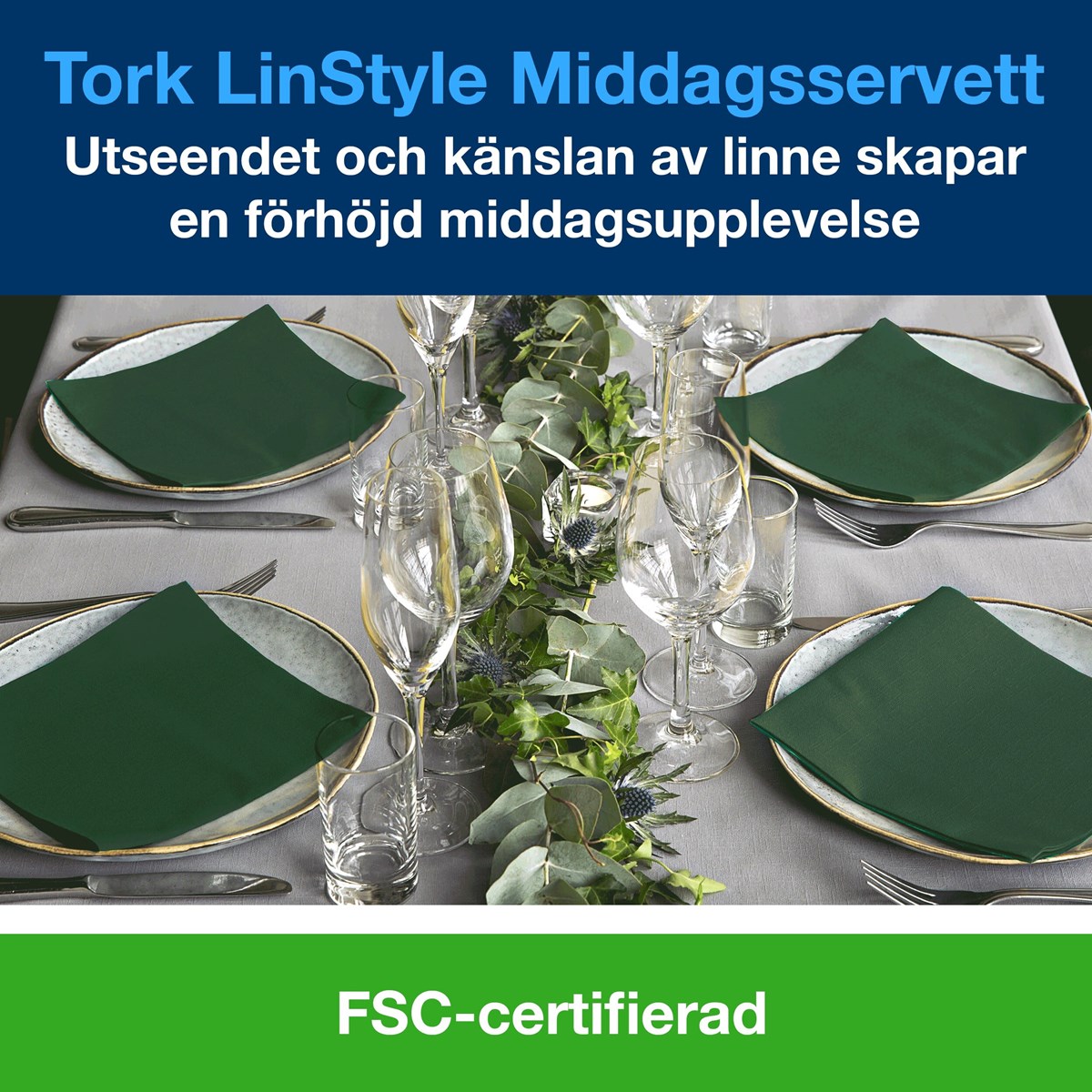 Gör ett fantastiskt första intryck i fullbetjäningsrestauranger med högkvalitativa LinStyle® Middagsservett. Med sin känsla av linne är den mjukare och tjockare än vanliga pappersservetter och ger ett elegant intryck. Suverän hållbarhet gör att restaurangservetterna varar under hela middagen, vilket minskar kostnader och förbrukning. Samtidigt ser den höga absorptionsförmågan till att personal enkelt kan städa upp spill. Med engångsservetter slipper personalen också tvättbesvären som kommer med textilservetter. 1-lagers. Premium-kvalitet. Mått vikt: 19,5x19,5 cm. Mått ovikt: 39x39 cm.