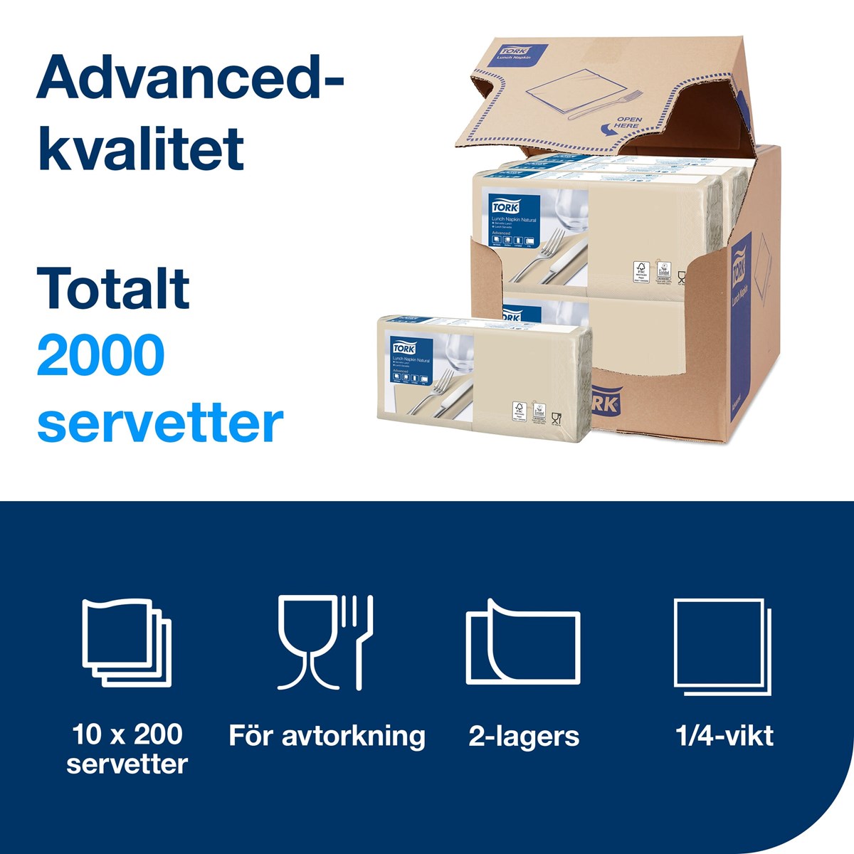 Servett Tork Natur 33x33 cm 1/4 vikning 200/fp