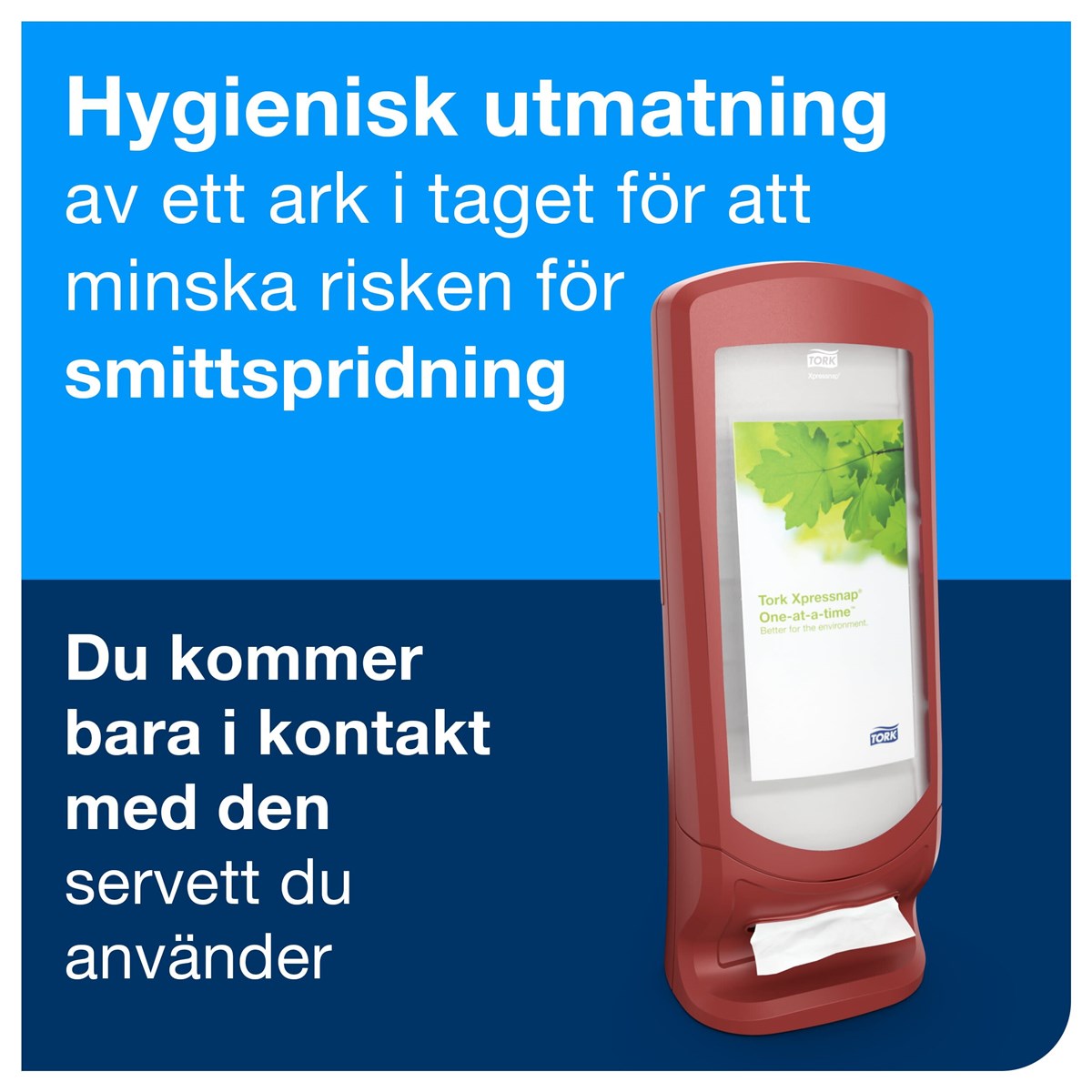 Stående design som spar plats på disken Enkel väggmontering Fönster för reklam eller personalinstruktioner Ett ark i taget för förbättrad hygien och minskad förbrukning Slitstark och enkel att rengöra