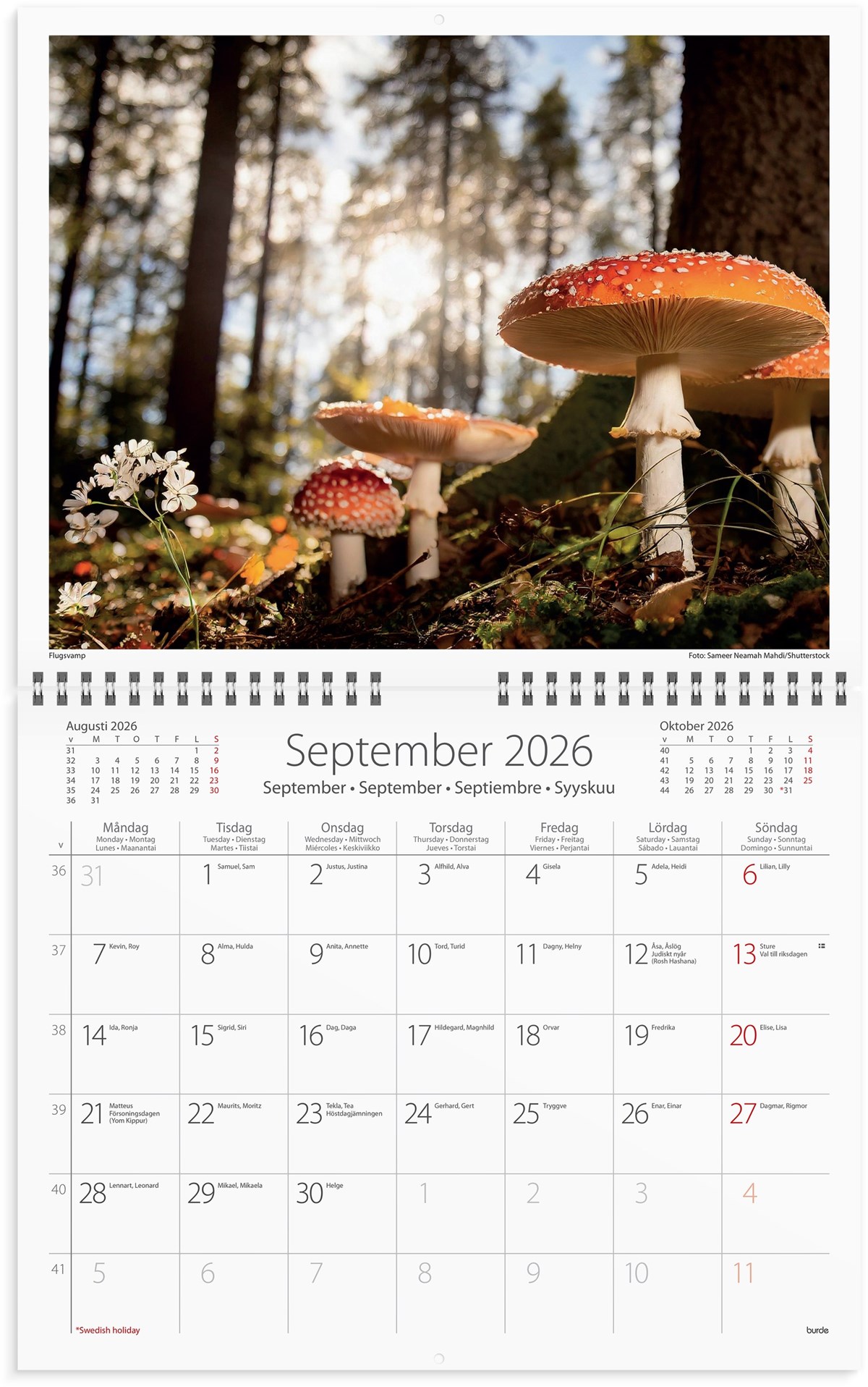 Format: 300x240 mm. Layout: Månad/blad. Kalendarium: 2026-01-01 - 2026-12-31. Omslag: Papper. Spiralbunden. Antal sidor: 12. Miljöinformation: FSC®.