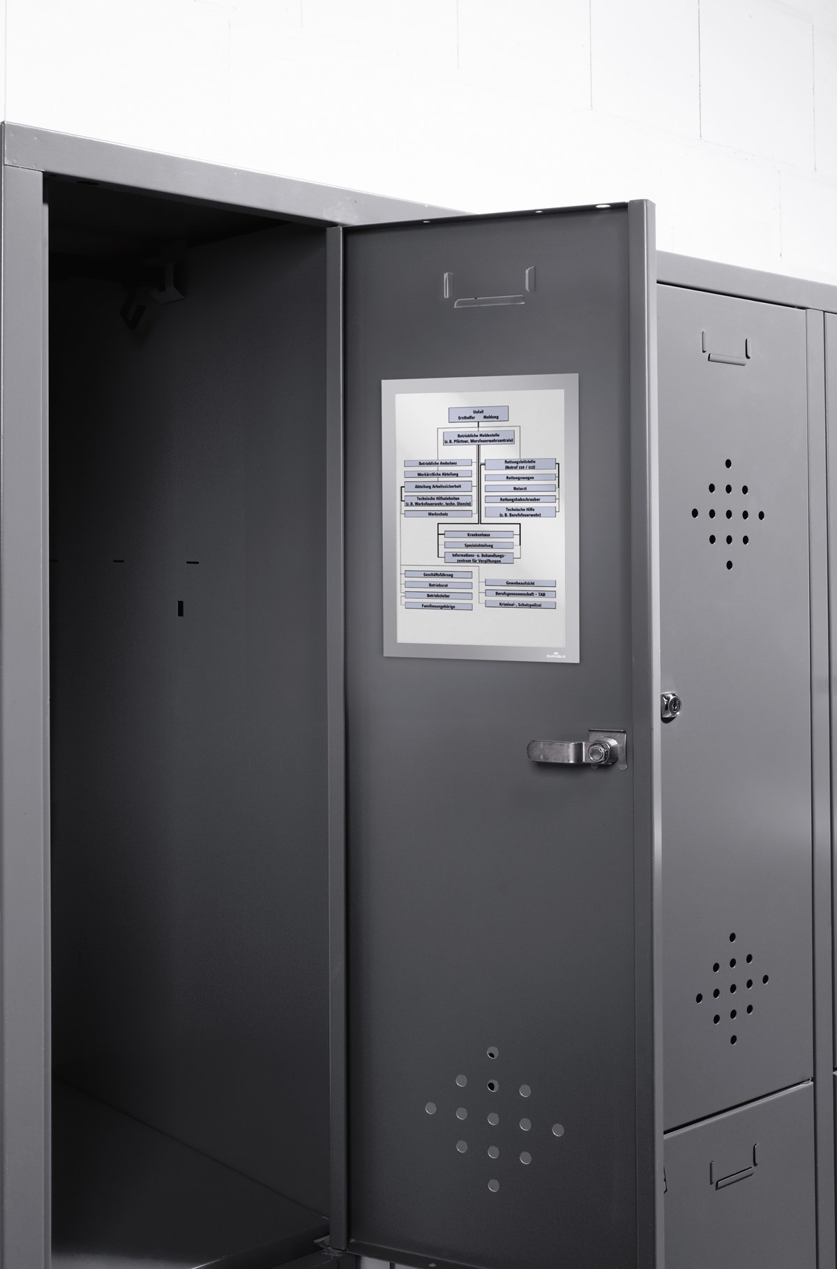 En magnetisk inforam för upplysningar, instruktioner, maskinfakta och information. Används på metallytor som t.ex. arkivskåp, omklädningsskåp, metallväggar i fabriksmiljö och whiteboardtavlor. A4-format. För stående och liggande format. 5 st/förp.