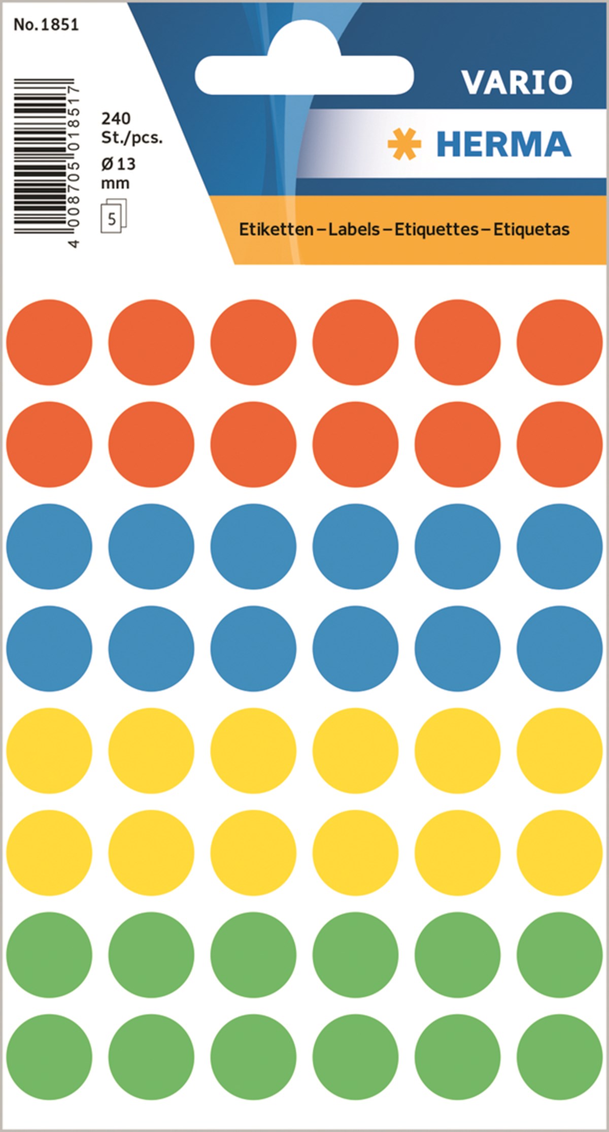 Märketiketter Herma Vario 13 mm 4 färger 240/fp