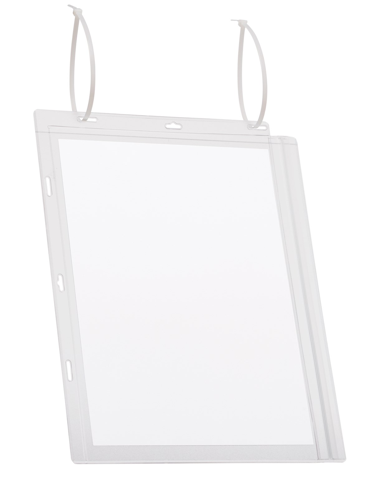 Vattentåliga plastfickor för användning utomhus – enkla att byta inlagan i Väderbeständiga och vattentäta plastfickor avsedda för information som ska visas utomhus där det finns risk för skvättande vatten t.ex. vid handelsträdgårdar, poolområden, grindar och anslagstavlor. Tål sol, hög fuktighet, dagg, regn och skvättande vatten. Plastfickorna är gjorda av transparent, UV-stabil och väderbeständig plast med antireflekterande effekt. Vattentät tryckförsegling skyddar mot väta. Testade enligt IPX5 standard. Tillverkade av återvunnen Blue Angel-certifierad plast. Kan användas i stående eller liggande format. 2 ark, som fickan rymmer, ingår. Fastsättning: de 2 medföljande buntbanden träs genom 2 av fickans hål. 5 st/förp.