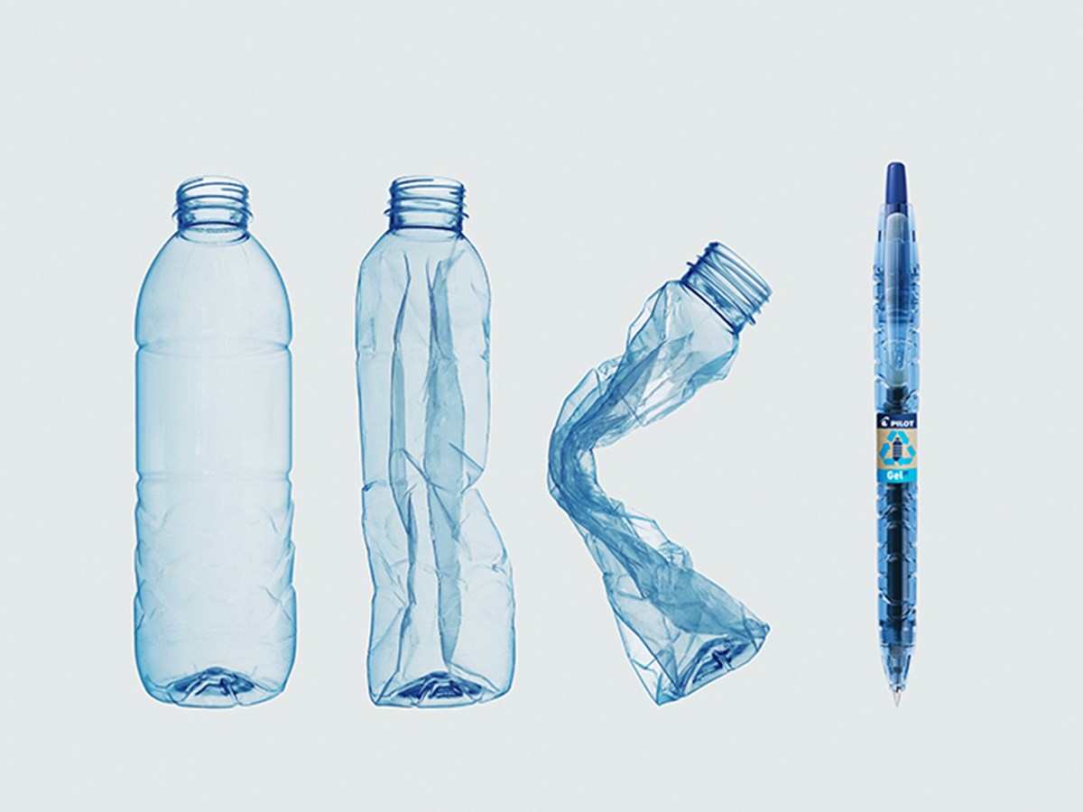 Denna penna är tillverkad av 92% återvunnen plast från PET-flaskor, varav 2,5% kommer från återvunnen plast plockad längs stränder och utmed vattendrag, ett innovativt sätt att delta i kampen mot havsföroreningar.