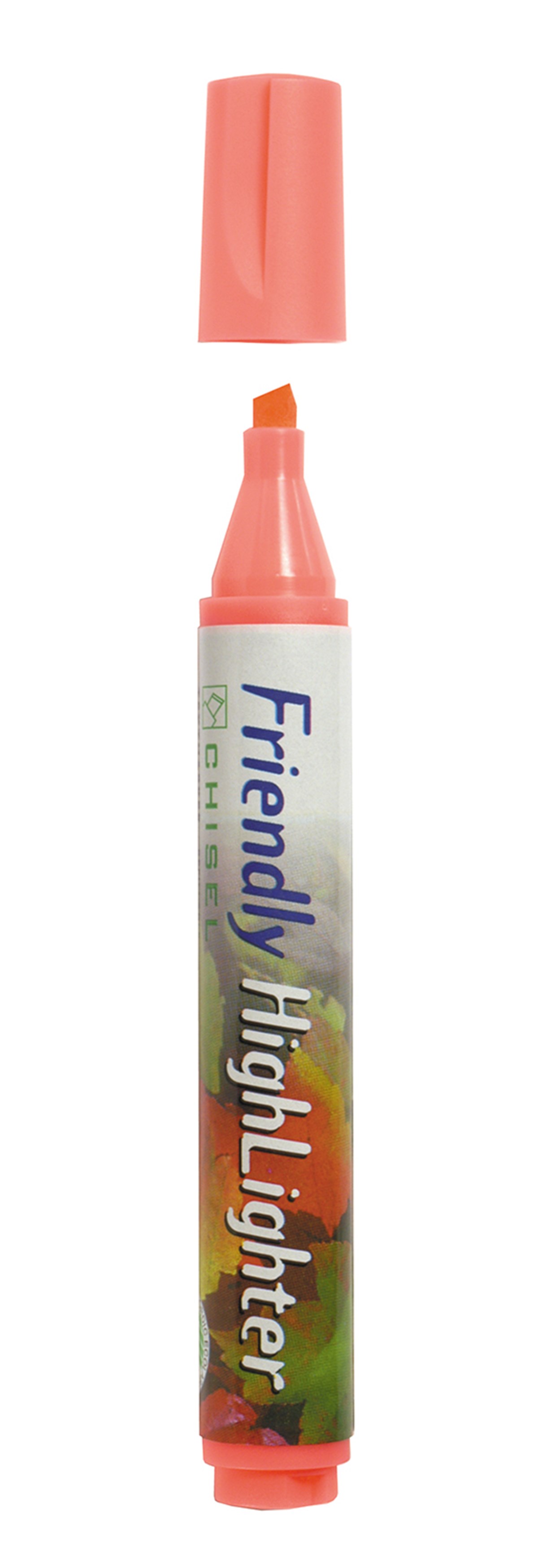 Svensktillverkad överstrykningspenna med pennkropp av miljöanpassat naturvaxat returpapper. Vattenbaserat bläck i fluorescerande färger. Spetsbredd 1–4 mm. 10 st/förp.