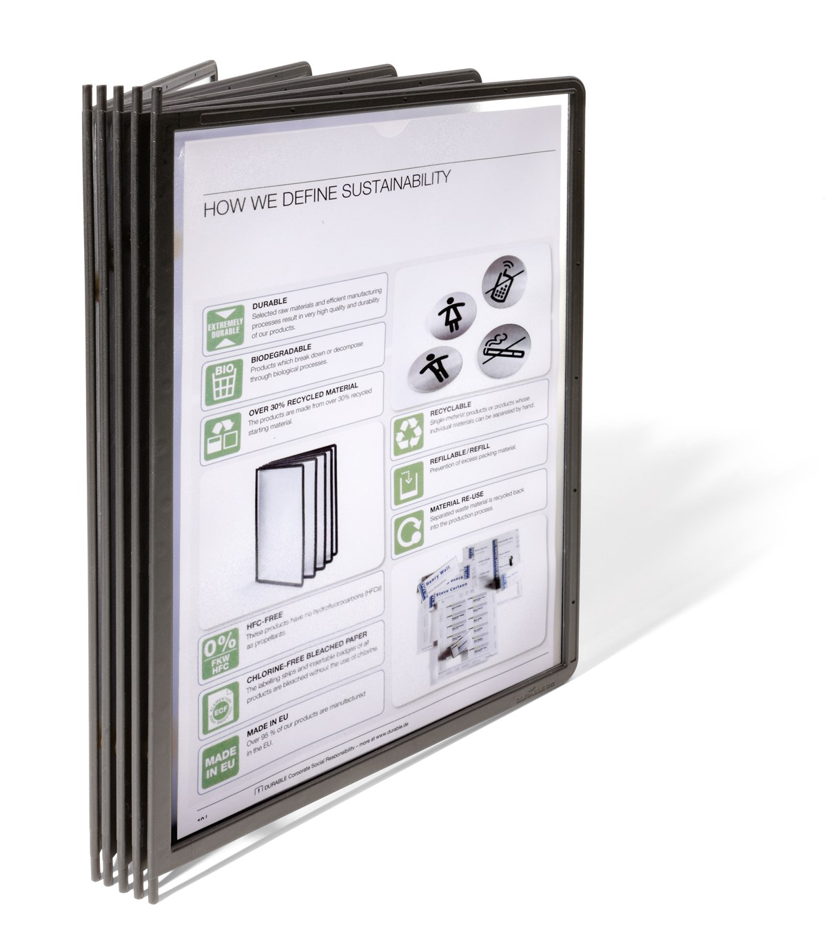 För information i A4-format, t.ex. prislistor, katalogsidor. Lågreflekterande och skanningssäker plast.