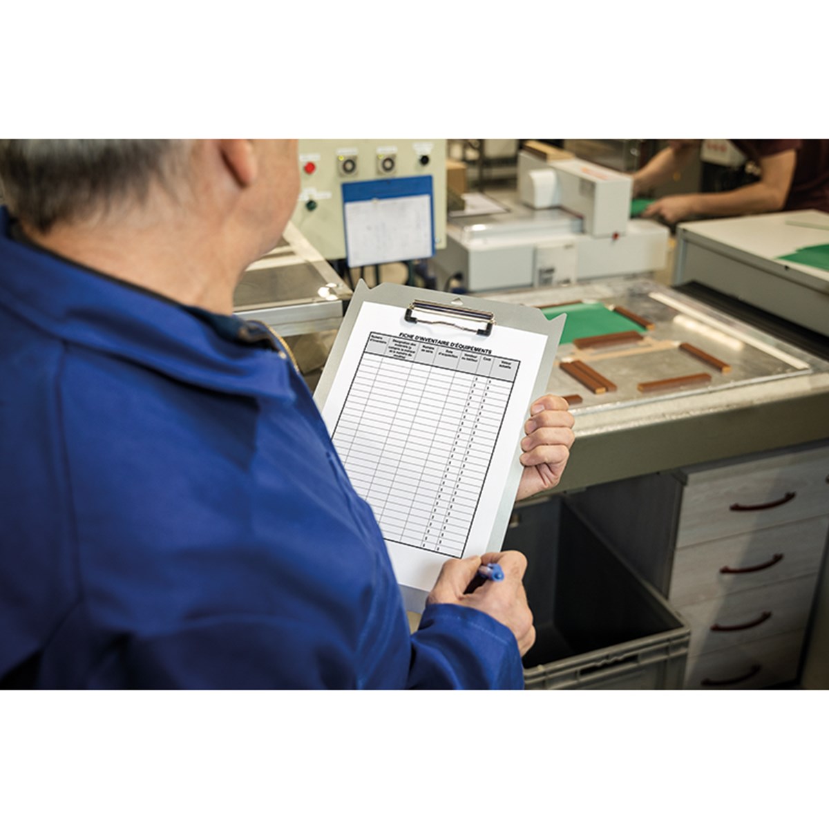 Lätt och elegant skrivplatta tillverkad av aluminium och polypropen, som är upp till 30% lättare än aluminium. Ytan är skyddad så den tål daglig slitage. Produkten är utformat för att stödja handleden, och gör det möjligt att anteckna hela vägen ner till slutet av sidan. Tillverkad av 80% återvunnen aluminium och PP. Kan användas vertikalt eller horisontellt. Håller upp till 50 A4 ark. Två pennfack. Hål för upphängning.