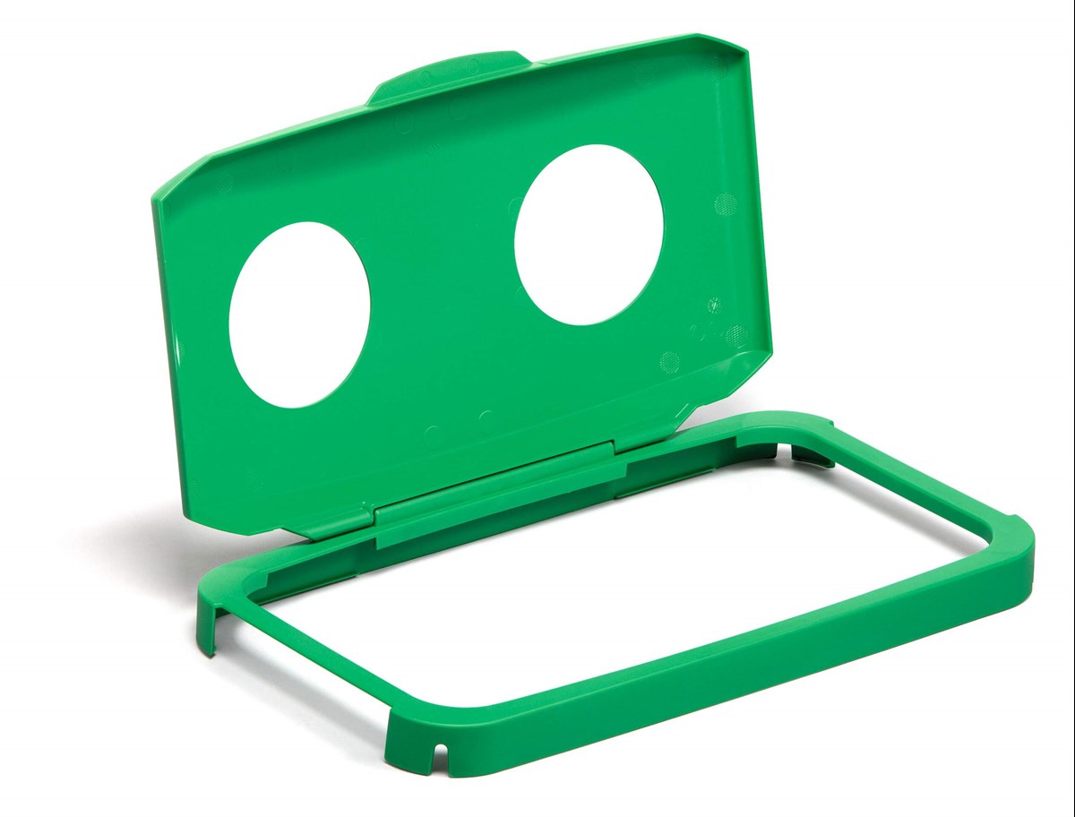 Komplettera avfallstunnan DURABIN 60 med detta gångjärnslock med två hål för pantburkar och flaskor, så blir det ett rymligt återvinningskärl att samla alla pantburkar i. Locket, som kläms fast på tunnans kant, stannar i uppfällt läge och kan hanteras med en hand. Klistra en Duraframe på tunnan och sätt i en återvinningssymbol "PANT" så blir det tydligt och lätt att källsortera.