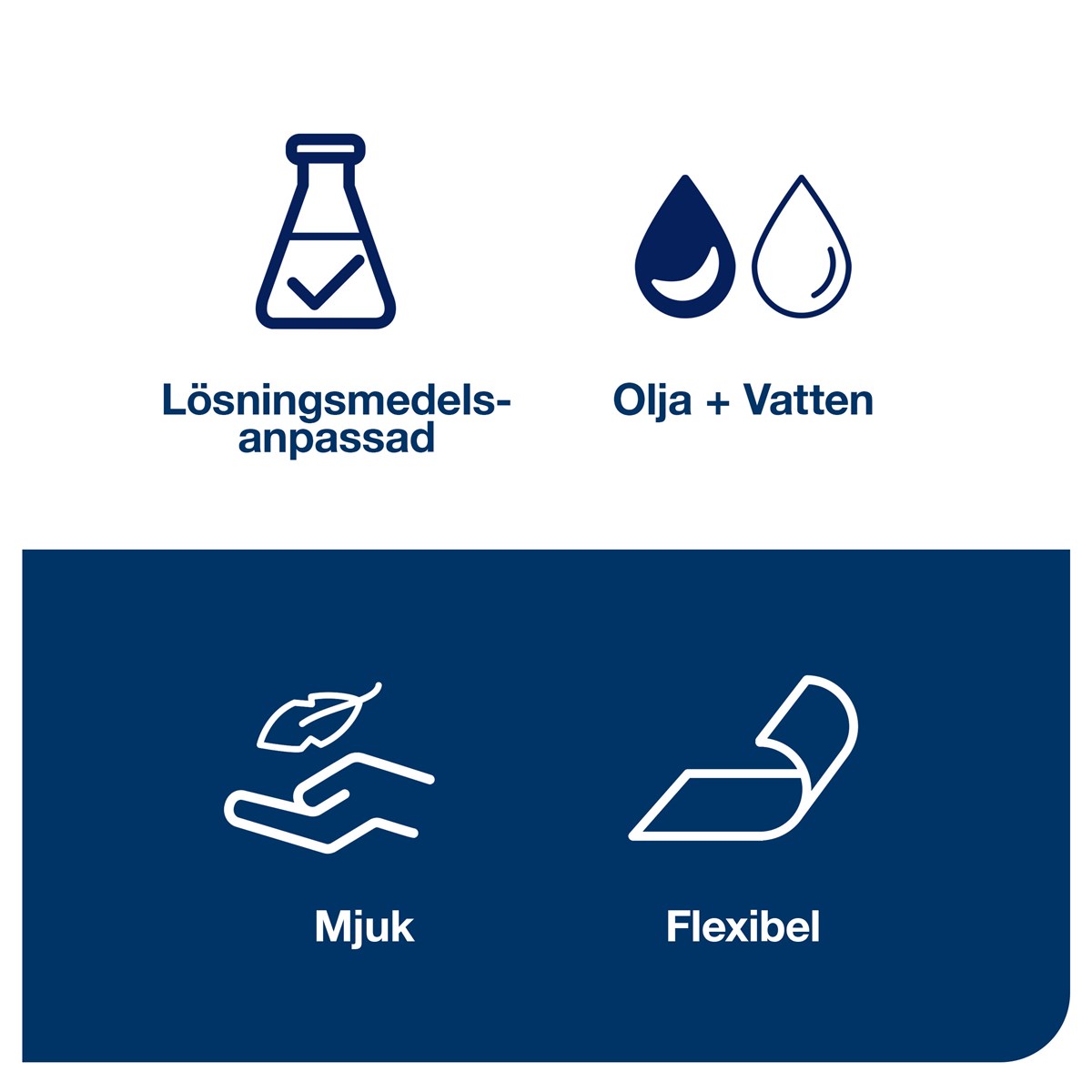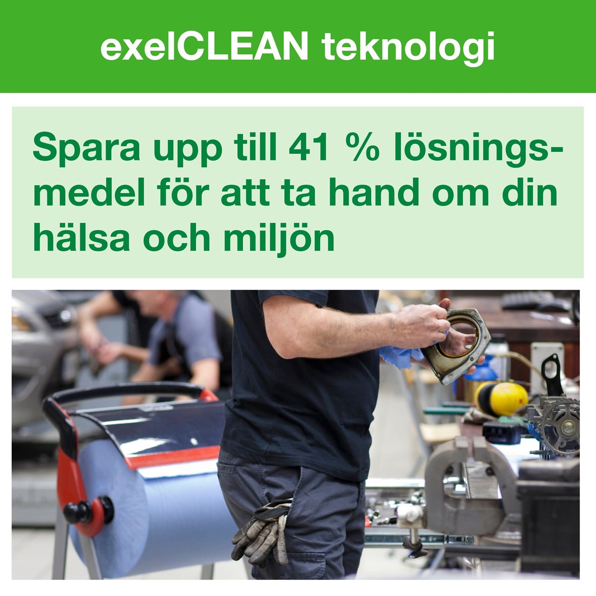 Mjuk och flexibel nonwovenduk för all slags rengöring. Kan användas i trånga utrymmen, men är ändå så kraftig att den utan problem tar bort olja, fett och smuts. Med exel-CLEAN som ger resultat i toppklass. Mått: 43 cm x 361 m. Perforerade, 950 ark/rulle. Gråa.