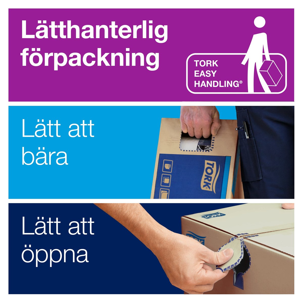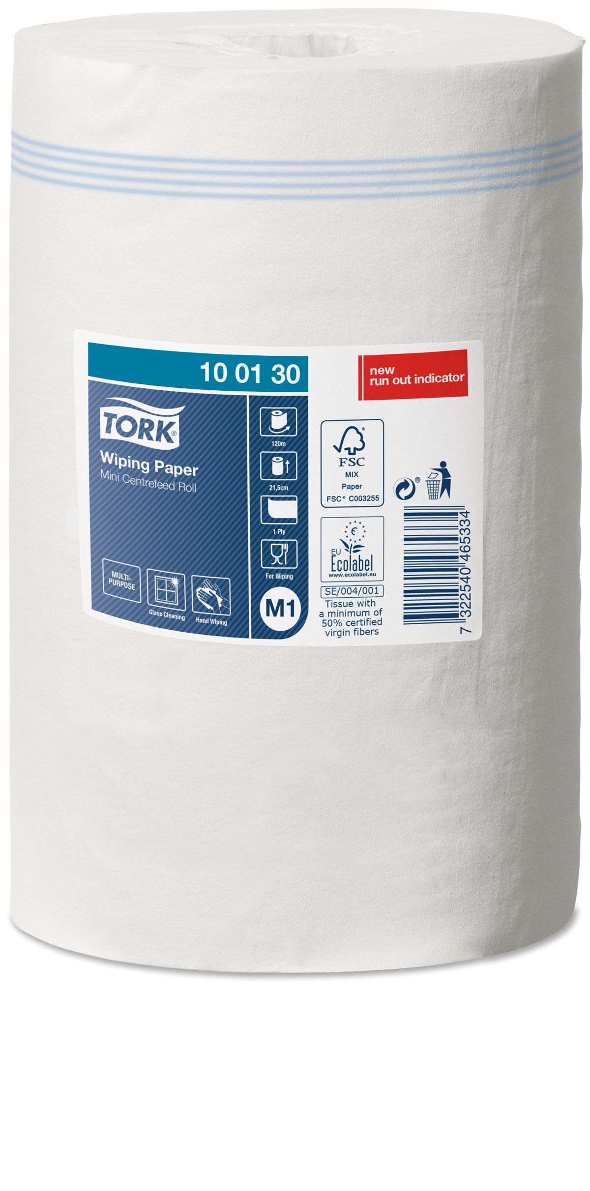 Våtstarkt, centrummatat papper. Passar perfekt för lättare avtorkning och handavtorkning. Har slutindikator – när det är 4 m papper kvar, syns blå linjer som talar om att det är dags att byta rulle. Godkänt för livsmedelskontakt. 1-lag. Passar till Tork hållare Mini M1. 120 m, bredd 21,5 cm, 0,6 kg/rulle. 11 rl/förp.