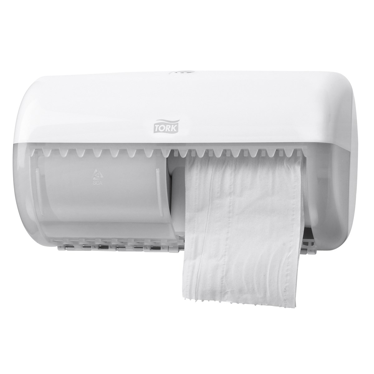 För toalettutrymmen med låg besöksfrekvens Kompakt för att passa i mindre utrymmen Rum för två rullar innebär mindre underhåll Sluten konstruktion för förbättrad hygien